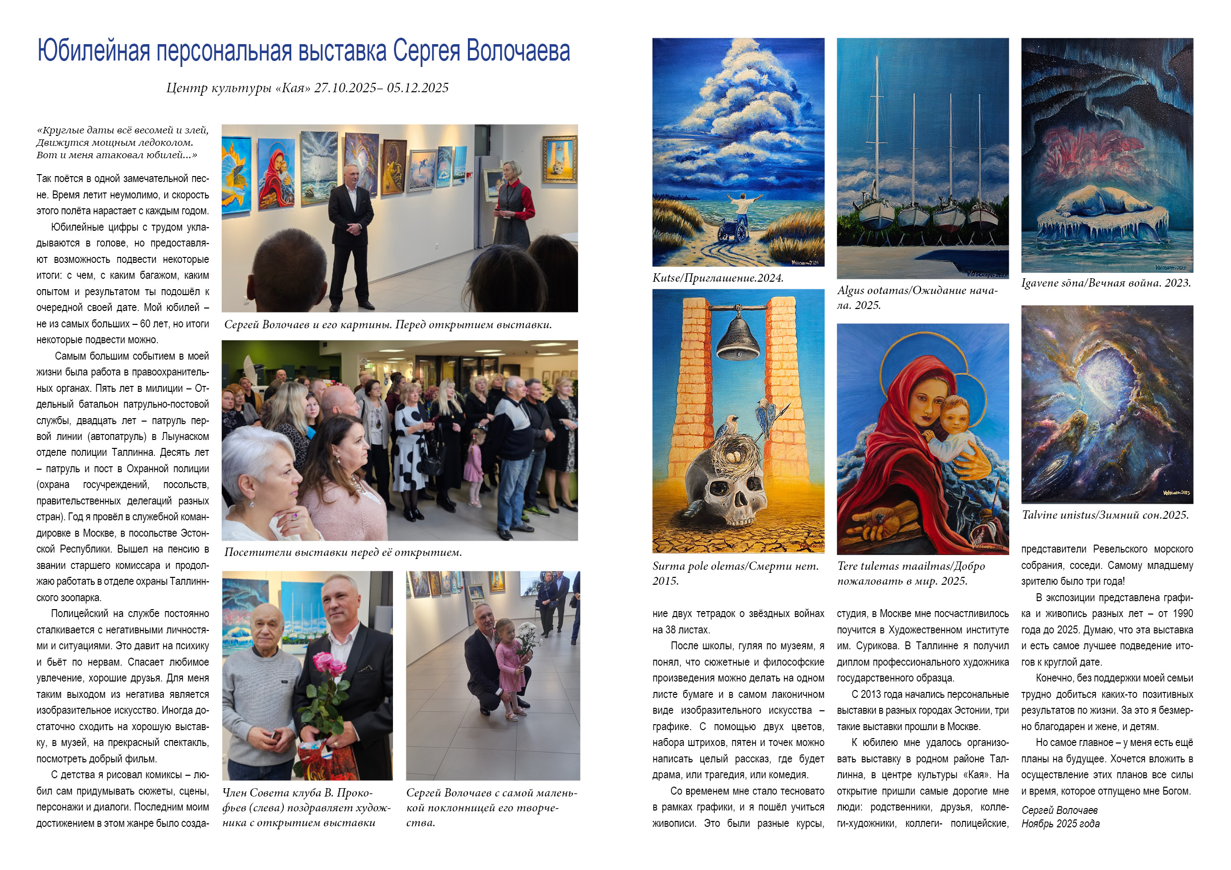 В 2024 году персональные выставки пройдут в Галерее архитектуры и дизайна (Таллинн), в Центре культуры и информации (Маарду), галерее Объединения графиков Эстонии (Таллинн) и в Центральной библиотеке (Силламяэ).